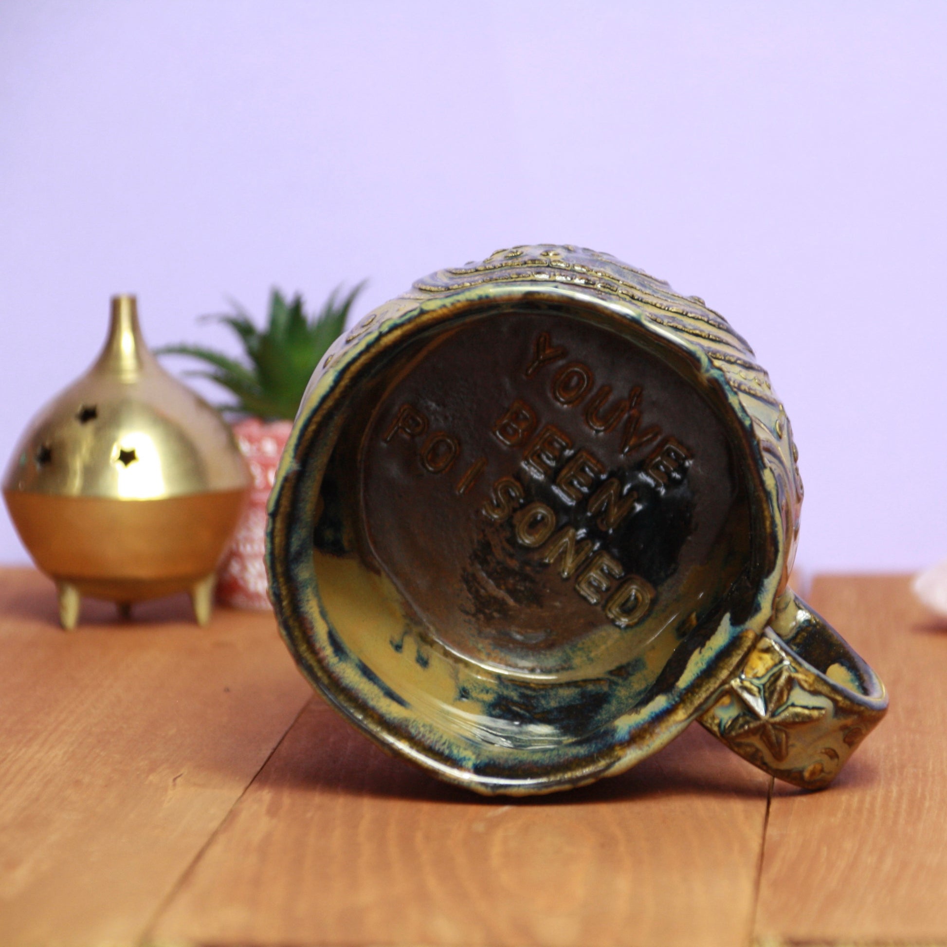 The interior of this mug says "YOU'VE BEEN POISONED" maybe don't actually poison your guests but I do find it a lil funny.